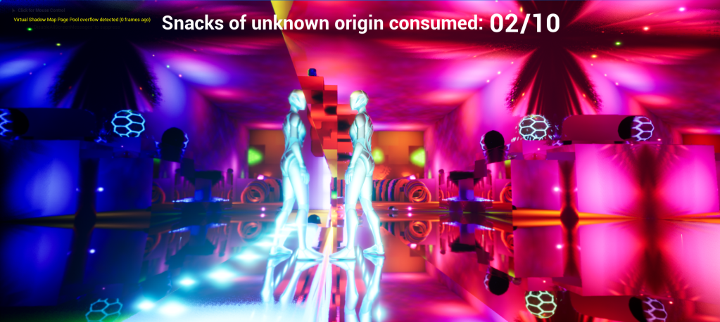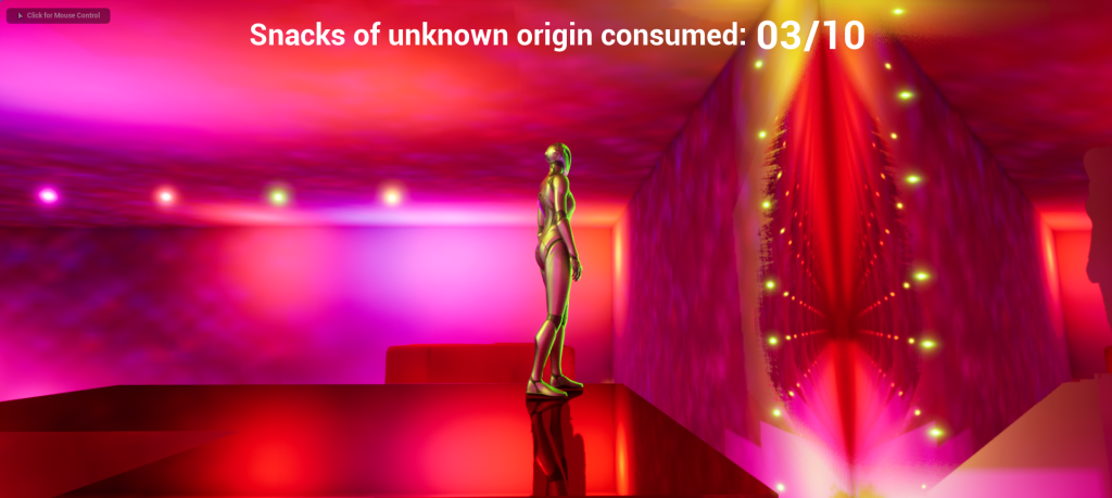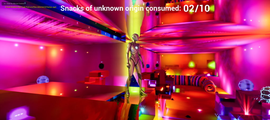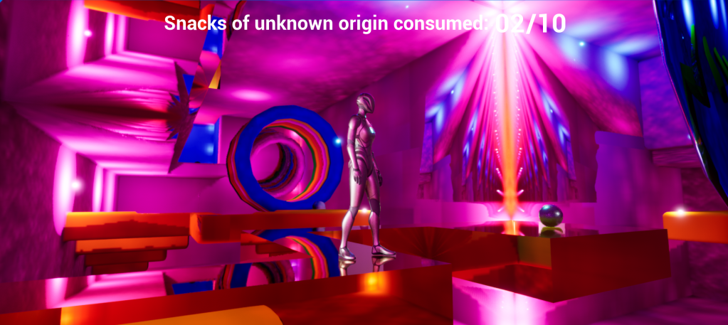 Since I wanted to further practice working Unreal Engine’s node system, I also added snacks paired with a snack count with fun sound effects, as a way to further encourage movement in the levels.