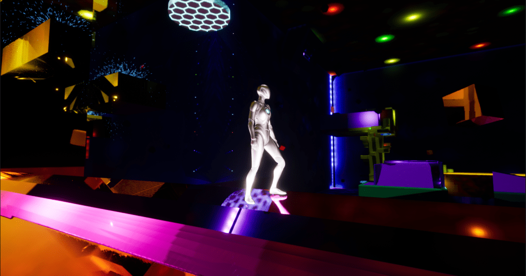 Since the game does not contain any objects or surroundings that the Player would be familiar with, it is not possible to navigate through the level in the same manner that one would navigate the real world. To make sure the abstractness of this level would not be perceived as unsettling, or disorienting in a negative way for that matter, I needed to make sure to create an atmosphere of a safe place for relaxation, being in the moment, and childlike exploration – as if experiencing the world for the first time.