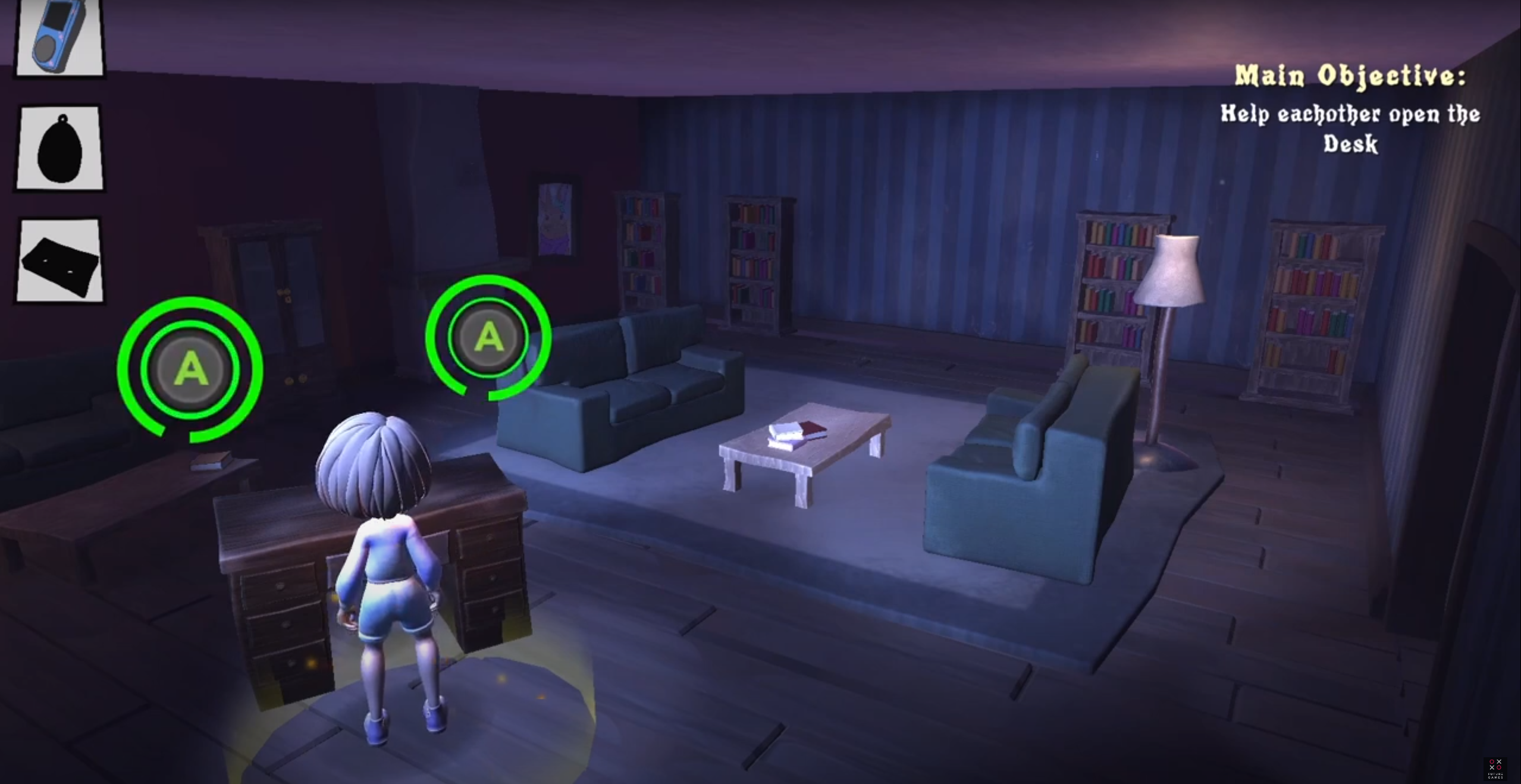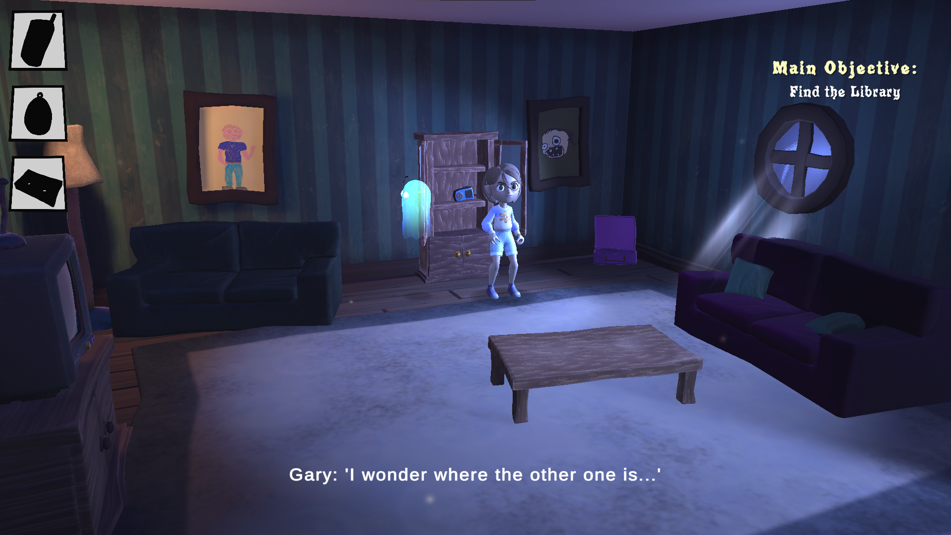 Re-Aliving of the Un-Alive is a humorous two player co-op puzzle adventure game, designed with younger teens and families in mind. It is inspired by the classic puzzle adventure game Resident Evil (1998) and the classic Scooby Doo cartoon.