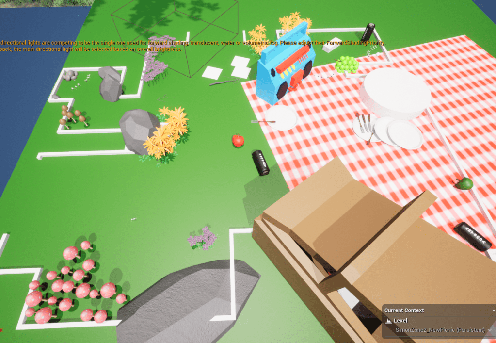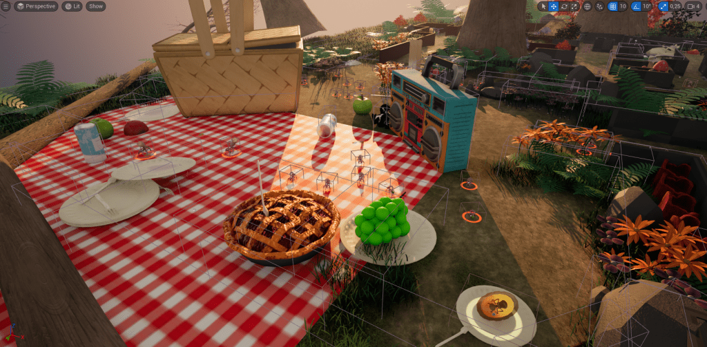 The team consisted of 8 students – 2 programmers, 4 designers, and 2 artists. In my role as a Level designer, my main focus was with the picnic zone. However, we all helped out with the different zones in any ways we could. Other contributions of mine that might be worth mentioning, is the idea to have Antics unfold in a park, and quality assurance work.