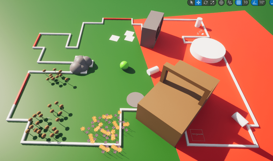 - The zone with some finished assets, textures and lighting – what a transformation!