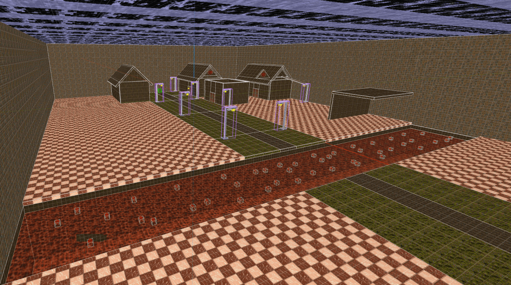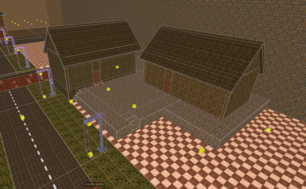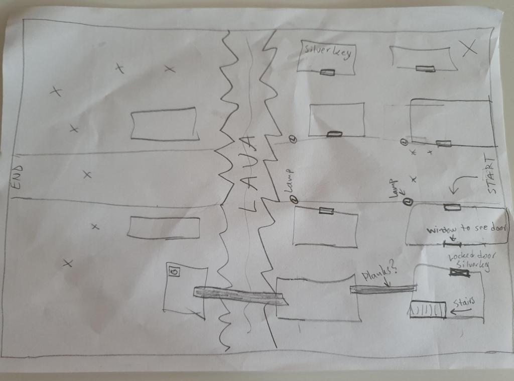 To encourage emotional engagement, I was careful planning out different events in the map. After enduring many battles in the first zone, the Player carefully makes their way across wooden boards to the final house.