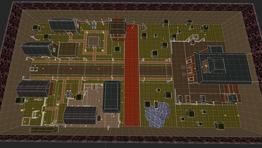 To achieve this, I designed a linear, yet pretty open, map that would allow for the Player to take different routes. The Player could play the level several times to improve their strategy or time. Several objects, such as weaponry or needed keys, can only be discovered through careful observation and dynamics. The Player is granted access to some of them through shooting at objects, while others are found in, for example, dumpster or behind cars. Hidden rooms can be uncovered as well.