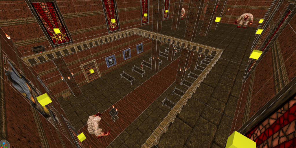 During our Level Design and World Creation course, we were given the tools to make our own map in the iconic first person shooter-game Quake from 1996. The engine, Trenchbroom, turned out to be super easy to use, yet it offered great wealth in creative possibilities. The best part was how easy the mechanics was to do, which gave a lot of time to focus on creating a seamless and intuitive progression through the map. I aimed to offer emotionally engaging gameplay through careful consideration of paths and placements as well as the balance between challenge and reward. I also aimed to design the level to fit both the fast risk-taker as well as more cautious explorer.